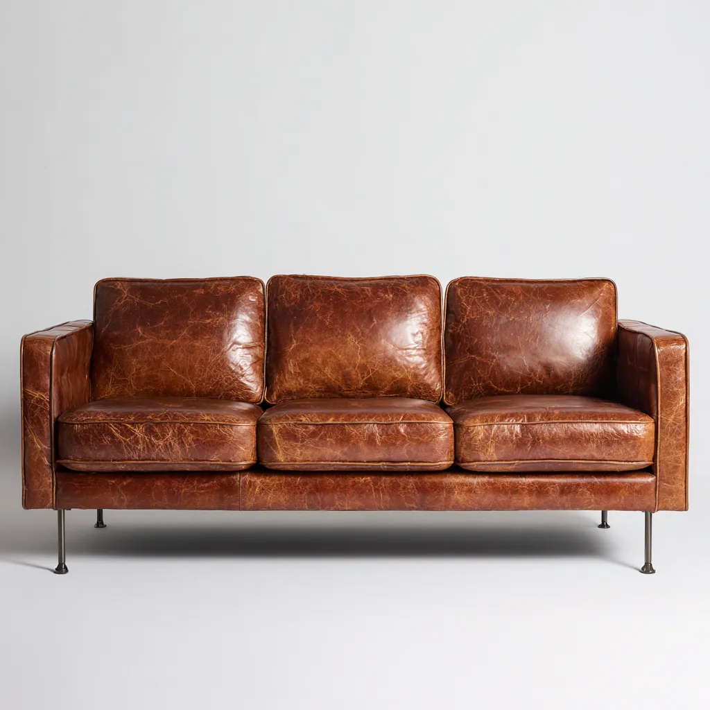 Gerades Sofa-Leder-212x91x81 cm-Braun-Vintage