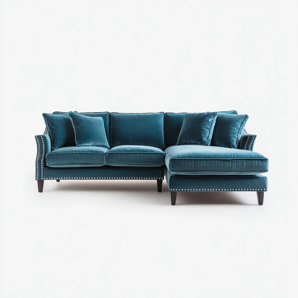 Ecksofa-Samt-262x166x92 cm-Türkis-Modern