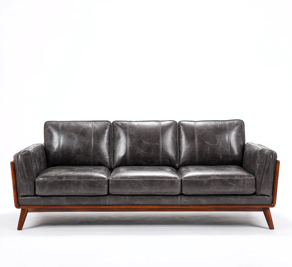 Gerades Sofa-Leder-218x92x84 cm-Dunkelgrau-Vintage