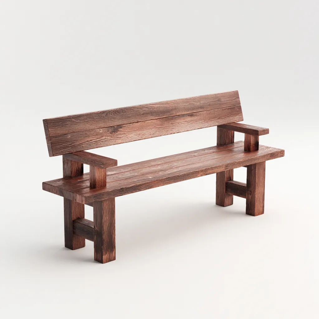 Die Gartenbank bietet eine komfortable Sitzgelegenheit im Freien. Das rustikale Design fügt sich harmonisch in natürliche Umgebungen und traditionelle Gartengestaltungen ein.