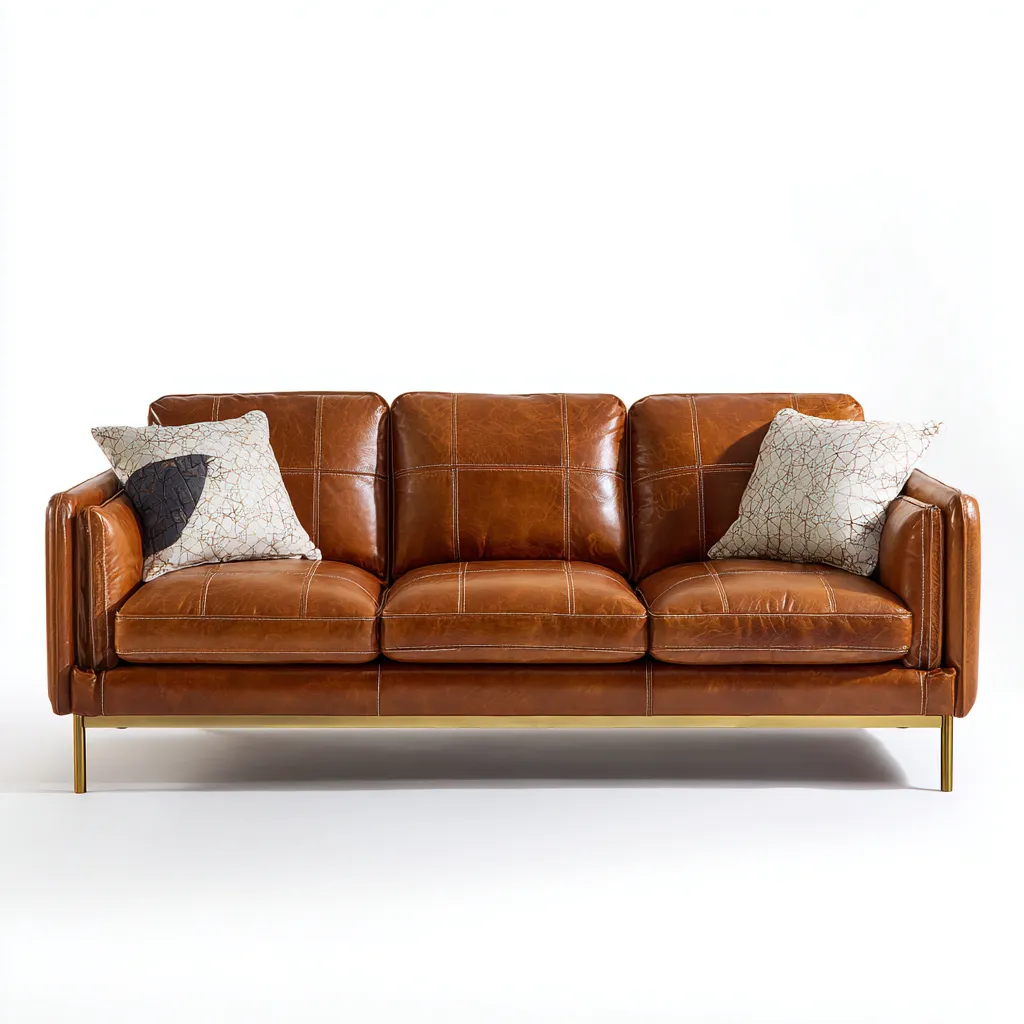 Der Bezug besteht aus Leder in Braun. Die Oberfläche ist gleichmäßig verarbeitet und weist eine charaktervolle Struktur auf. Die stabile Konstruktion unterstützt eine zuverlässige Nutzung im Alltag.