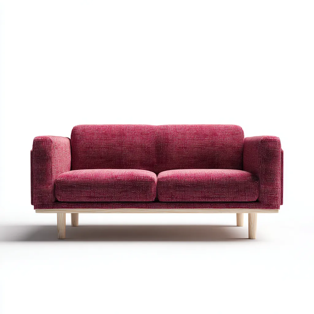 Der Bezug besteht aus Stoff in Dunkelrot. Die Oberfläche ist gleichmäßig verarbeitet und weist eine feine Struktur auf. Die stabile Konstruktion ist für den täglichen Gebrauch ausgelegt.
